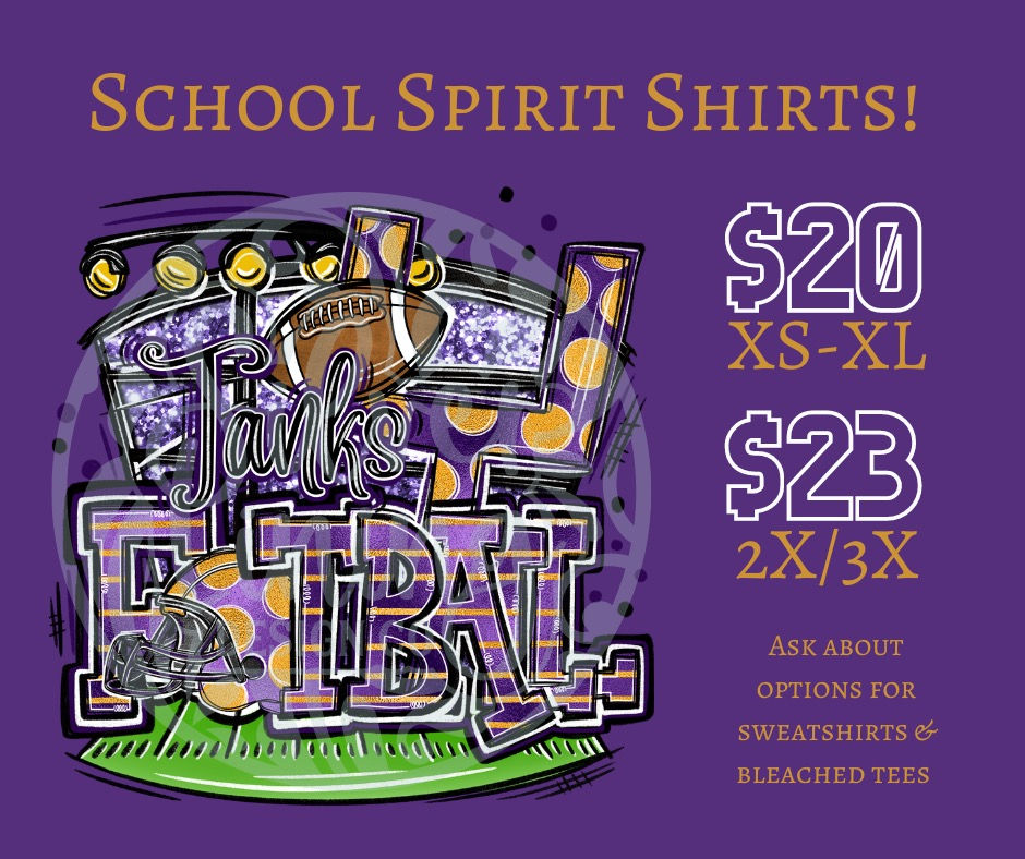 2022 School Spirit Shirts! Show your team pride with a shirt you won't find anywhere else!!