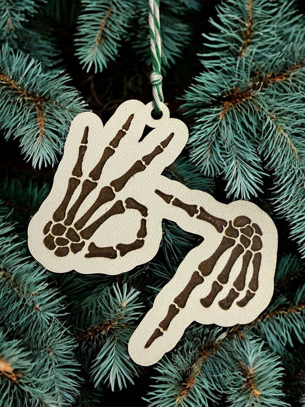A little dark humor meets holiday cheer! This laser-cut ornament features skeleton hands flashing the iconic 6-7 hand sign — a perfect mix of mischief and style for those who like their Christmas décor with personality.